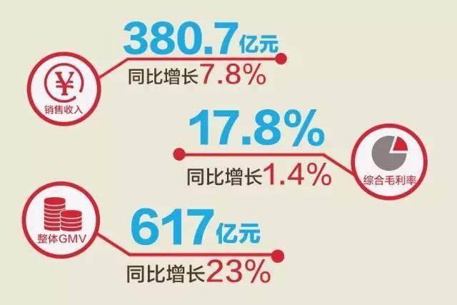 另一方面,根據(jù)國美發(fā)布的中期業(yè)績報(bào)告顯示,2017年上半年集團(tuán)整體GMV為人民幣617億元,其中線下部分412億,線上部分205億,比去年同期增長23%。而在GMV兩位數(shù)增長的同時(shí),國美的綜合毛利17.8%和Q2同店增長8.5%的業(yè)績均高于同行業(yè)水平,也使國美成為目前唯一一家“既增長、又盈利”的零售企業(yè)。