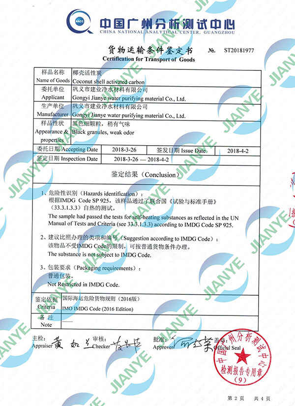 椰殼活性炭廣東分析檢測【建業凈水】